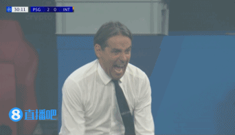 第30分钟,两球落后,国米主帅小因扎吉非常着急。↓